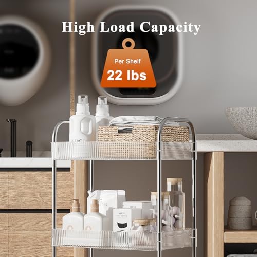 3 Tier Rolling Cart with Wheels,Utility Trolley with Handle,Clear Acrylic Movable Storage Organizer for Kitchen,Bathroom,Nursery,Laundry,Book,Snack,Craft
