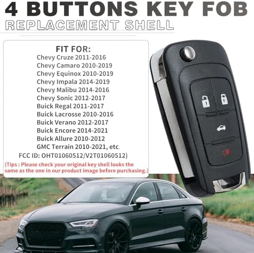 2 Pack Flip Key Fob Case Shell Replacement 4 Button for Chevy Cruze Equinox Camaro Impala Malibu Sonic Buick Regal Verano Encore Lacrosse GMC Terrain 2010 2011 2012 2013 2014 2015 2016 2017 2018 2019
