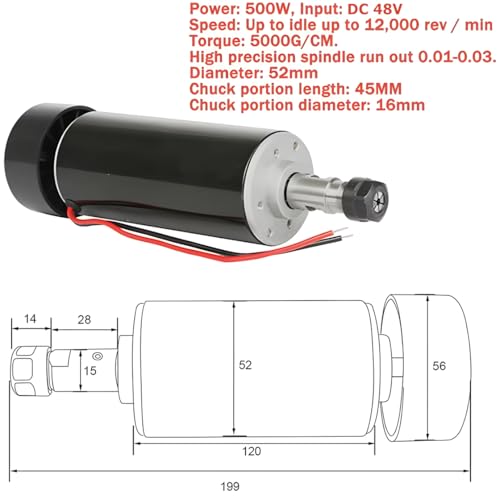CNC Spindle Motor DC12-48V 500W Watt 0.5KW Air Cooled Milling Motor 12000RPM 600mN.m ER11 Collet 52mm Diameter Spindle for DIY CNC Engraving Milling CNC Router Drilling Machine