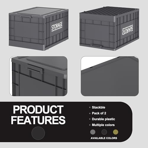 SAILUN Storage Bins with Lids, Totes for Storage Stackable Collapsible Storage Bins for Garage, Camping, Outdoor, and Organization with Wheels and Totes, 2 Pack Drak Grey