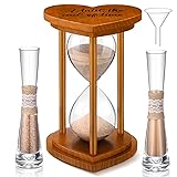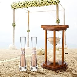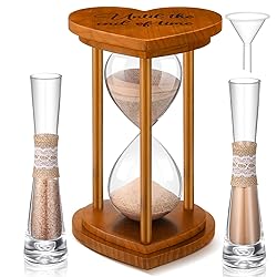 Unity Sand Hourglass Set: included in this package is 1 farmhouse brown wooden frame sand hourglass, 2 pieces of sand ceremony vases, a utilitarian funnel, and 2 packs of sand; It's a complete set, granting a delightful and effortless experience Quality Material: we use quality glass for the farmhouse sand hourglass container, ensuring smooth and visibility; The frame of the sand hourglass is carefully crafted from wood and presented in a sleek brown color, portraying aesthetic and longevity Gift of Romance: our farmhouse style unity sand hourglass is not merely functional, but it is also an ideal desktop decoration; It is an ideal gift for your significant other on your wedding day, anniversary, or any other defining ceremony Easy to Assemble: this rustic sand ceremony vase and hourglass set is designed for ease of use; It comes with a practical funnel that facilitates the pouring of the sand into the glass container efficiently, reducing the chance for spills or messes Ideal Size: our farmhouse wooden sand hourglass measures about 11.81 inches/ 30 cm in height, making it an eye catching adornment on tables; The 2 linen vases, each being about 7.48 x 1.97 inches or 19 x 5 cm, enhance the overall beauty of the suit
