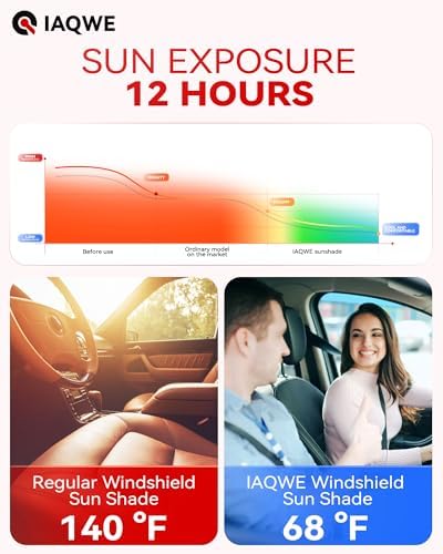 2025 IAQWE Windshield Sun Shade for Car Front Window, Thickened 65 x 32in Foldable Sun Visor Protector Blocks UV Rays and Heat, Keeps Your Vehicle Cool Fit for Car, Truck, SUV