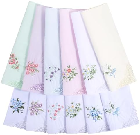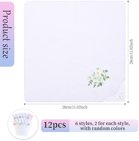 12pcs Ladies Handkerchiefs Hankies for Women Soft Cotton Women's Handkerchiefs Embroidery Ladies Hankies Vintage Floral Lace Handkerchiefs Machine Wash Sweat Handkerchiefs Bulk for Women Wedding Party