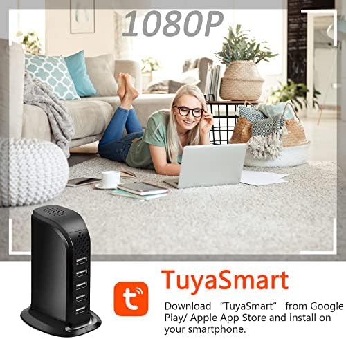 WiFi USB Charger Hidden Camera,1080P Wireless USB Charger Security Spy Cameras Nanny Cam 5 Port Plug WiFi Mini Video Camera for Home Surveillance with Motion Detection Remote View No Audio