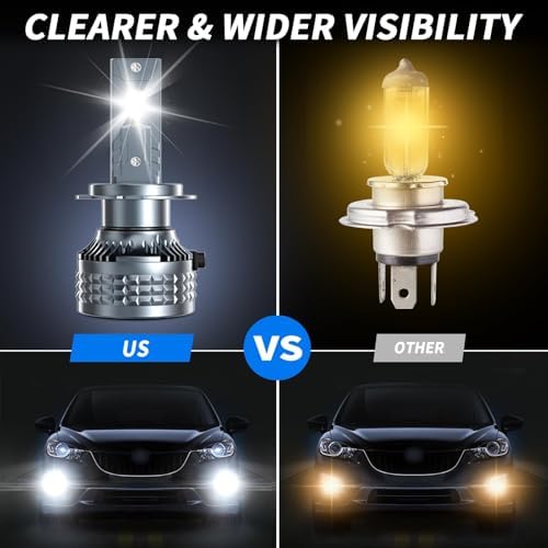 Upgraded H4 Bulbs Fog Lights, 6000K Cool White Super Bright Fog Light, Halogen Raplacement, Plug and Play, Pack of 2