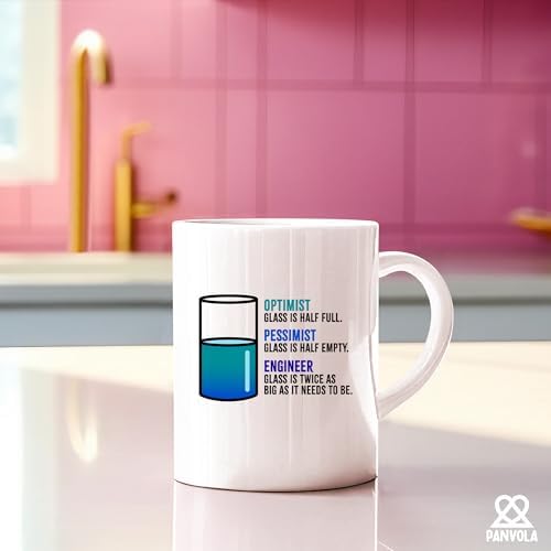 Panvola Engineer Optimist Pessimist Funny Coffee Mug For Engineering Boyfriend Husband Student Son Daughter Coworker Friend From Dad Mom Wife Girlfriend Novelty Drinkware Ceramic Mug 11 oz White