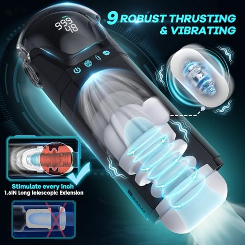 - Upgrade Sex Toys for Men: This high-tech male sex toys offers 9 suction & 9 thrusting & 9 vibration settings for an immersive experience. Inspired by sci-fi movies, the male sex toy delivers a futuristic look.128 textured particles enhance every sensation, while the LCD screen makes penis pump easy to show settings. App control creates a personalized pleasure