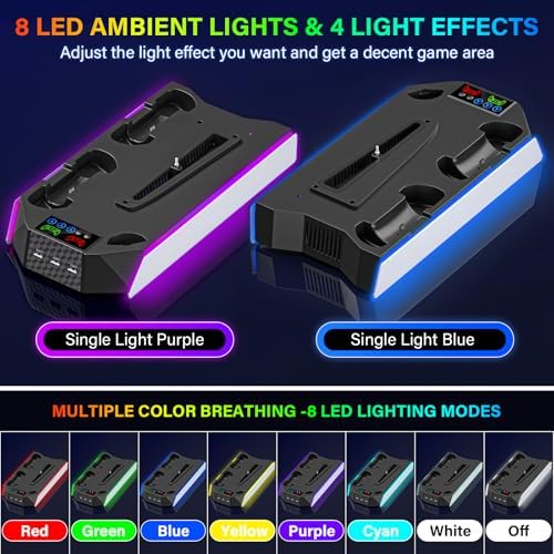 - Advanced Protection For Playstation 5 Controller - Adopted intelligent circuit protection chip, the ps5 slim docking station with cooling fan protects ps5 controllers from overcharging, overheating, overcurrent, overvoltage and short circuits, ensuring controllers' safety even charged overnight. The ps5 slim controller charger dock will charge the controller in trickle charging mode when the controller battery is charged up to 90%, ensuring the optimum health and longevity of ps5 controller