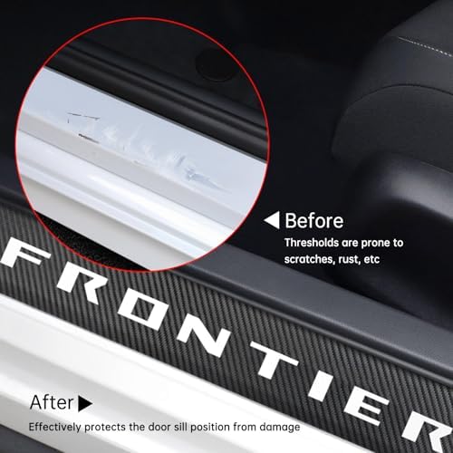- 【Easy to Install】Our products are Tailor-made interior accessories for Nissan Frontier. Even if there is no installation experience, it can be installed perfectly with NO bubbles. Before installation, please wipe the car door sill clean to ensure that there is no oil and dust, then tear off the protective film of the strong adhesive tape and stick it in the correct position, finally peel off and paste, press tight.