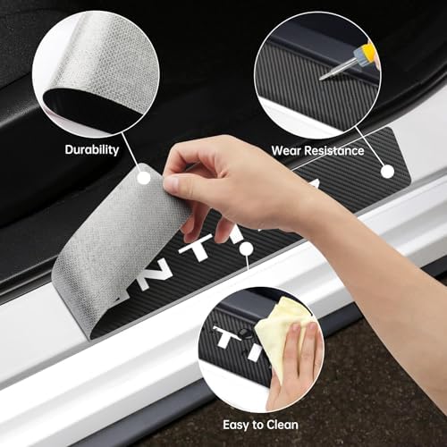 - 【Durable Protection】Car door sill scuff plate help you save a significant amount on auto body paint and restoration costs. Through their mere presence on your door jamb, door step protectors help protect your car’s auto body paint from various aspects. These factors include but are not limited to: smudges from mud or dirt, abrasions caused by footwear, scratches or scuffs caused by doors.