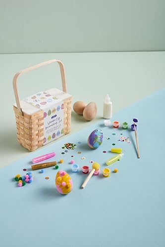 This charming woven wood Easter basket is the perfect addition to your holiday festivities, offering endless creative possibilities for children and families alike. Crafted with care, the basket is both sturdy and stylish, making it an ideal keepsake for years to come. Inside, you'll find four beautifully crafted wooden eggs, ready to be transformed into unique works of art. The set includes a delightful assortment of decorating materials, such as vibrant paints, colorful pom-poms, shimmering glitter, and sparkling gems, allowing for a truly personalized touch. Designed for ages 3 and up, this Easter basket encourages imaginative play and artistic expression, making it a wonderful gift that inspires creativity and joy during the holiday season.