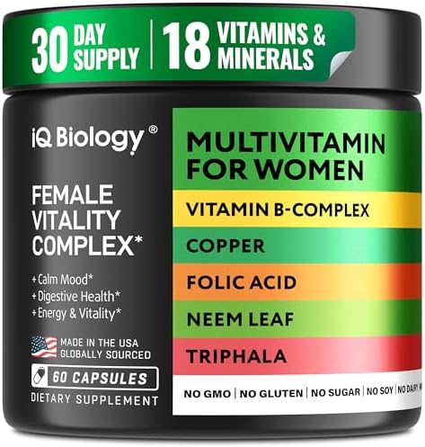 - Daily Multivitamin for Adult Women – Whether you’re starting your wellness journey or continuing it at any age, IQ Biology natural multivitamin for women fits any stage of life. This multivitamin for her offers multiple vitamins to support daily energy, immunity, and overall balance. It adapts to your stage – not your birth year. Capsules enriched with CoQ10 and antioxidant vitamins C & E, supporting bone strength and cardiovascular wellness while protecting cells for lasting vitality.