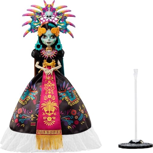 Monster High Doll, Skelita Calaveras Día de Muertos 2025 Collectible, Aztec-Inspired Gown with Vibrant Accessories Like Headdress and Necklace