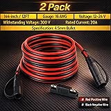 Bates- SAE to SAE Extension Cable, 12 FT, 2 Pack, 16 AWG, SAE 2-Pin Quick Connect Disconnect with Polarity Reverse Adapter, Solar Panel Extension Cable for Battery Chargers, Maintainers & Motorcycles
