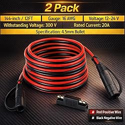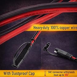 - Bates SAE to SAE extension cable includes 2 Pack 12-foot 16 AWG cable, designed for efficient and secure power transfer between solar panels, battery chargers, and other DC-powered systems.Made with durable copper wire and high-quality insulation, it provides excellent conductivity, flexibility, and weather resistance for both indoor and outdoor use.The SAE quick connector and disconnect design allows for fast, secure connections with minimal effort, reducing setup time and improving usability.Compatible with most SAE plug systems, this extension cable is ideal for solar setups, RVs, motorcycles, and automotive charging applications.Comes with a dust cap to protect the connector from dirt and moisture when not in use, extending its service life and reliability.