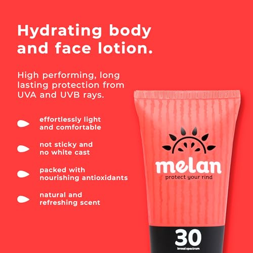 - ECO-FRIENDLY & SKIN-FRIENDLY PROTECTION: Melan SPF 30 Sunscreen Lotion is reef-safe, river-safe, and made with clean ingredients to protect both your skin and the environment. Family-friendly, dermatologist-tested, and free from seed oils, it’s the perfect sunscreen for everyone. Feel good knowing your purchase gives back.