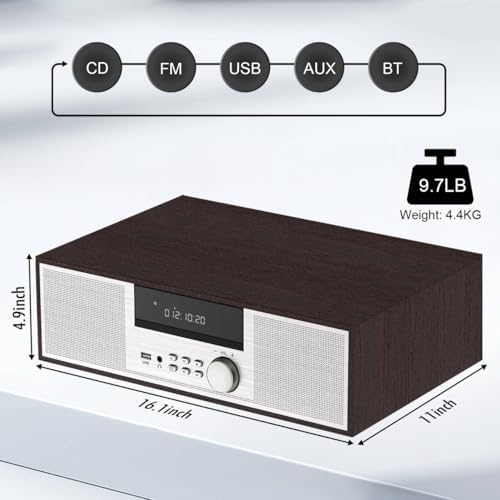 - All-in-one multimedia player: supports CD/CD-R/CD-RW, MP3. With the Bluetooth function, you can wirelessly stream audio content from your smartphone, tablet (or other Bluetooth-enabled smart device) to play it via the Hi-Fi audio system. Listen to FM radio (not DAB), play MP3s/WMA via USB or even use the 3.5 mm aux input to play audio from other devices.