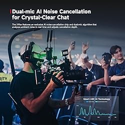 【 Full-Duplex Team Communication】True full-duplex wireless intercom allows everyone to talk and listen at the same time—no push-to-talk delays. Perfect for film production, live events, sports, and stage coordination. 【 Dual-Ear Noise Isolation + AI Noise Cancellation】Closed dual-ear design blocks external noise, while the AI noise-cancellation chip with dual microphones intelligently reduces background noise for crystal-clear communication in loud environments. 【500m Stable Range with Signal Boost】Built with dual external antennas, delivering a reliable 500m (1640ft) line-of-sight range. One-button SignalBoost enhances penetration through walls and complex environments. 【Bluetooth Mode for Calls & Music】Instantly switch between intercom and Bluetooth modes. Connect to your smartphone for phone calls or music playback, combining immersive audio with full noise isolation. 【Expandable System, Low Latency & All-Day Comfort】Supports up to 13 users with flexible group expansion. EasyGo one-click pairing and low latency as low as 80ms keep teams in sync. Lightweight 194g design with 24-hour battery life ensures all-day comfort.