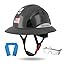 Structure Full Brim Hard Hat with Glasses and Cooling Towel Adjustable Ventilation Reflective Helmet ANSI Z89.1 Type OSHA Approved 6 Point Hanging Helmet for Industrial