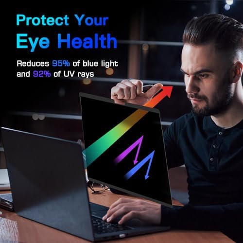- Blue Light Reduction for Healthier Eyes – Protect your eyes with our Blue Light Filter technology. Prolonged screen time can cause eye strain and disrupt your sleep, but with the PYS Privacy Screen, you can enjoy reduced blue light exposure while safeguarding your privacy. Whether you're working late into the night or binge-watching your favorite series, our blue light filter helps protect your eyes from harmful rays, ensuring that your eyes stay healthy and relaxed. Perfect for anyone who spends long hours in front of their laptop.