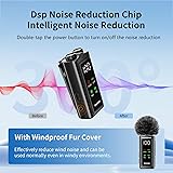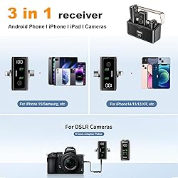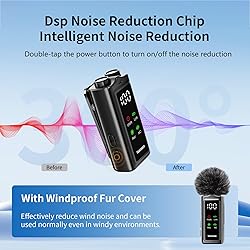 Noise Reduction and Mute: The wireless microphone for iphone is equipped with noise reduction chip and a premium windshield. 75dB professional noise reduction for clear and clean video voices; double-click to mute the sound with one click for seamless team communication and meetings. Independent Recording: The wireless clip on microphone can be used independently as a voice recorder. Support up to 32G TF card (not included). Note: If unplugging or inserting TF card, please do it when the transmitter is off, otherwise it is easy to damage the TF card and its content. 65 FT Transmission Range: Lapel microphone wireless with advanced 2.4G technology. Can capture clear, high-fidelity audio up to 65 feet. You can move and record freely within this range, without being restricted by wired microphones. Rechargeable Charging Case: The wireless lavalier microphone comes with a 1050mAh charging case. Can fully charge the whole set of equipment once, and each charging takes about 1.5 hours. It is also capable of charging both microphones up to 3 times. The numbers on the mini microphone and the charging case will tell you how much power is left. Large Capacity Battery: The type c lapel microphone comes with a 150mAh battery with 4-5 hours of working time and the receiver 300mAh with 10-11 hours of working time. They both have a USB-C port for direct charging while working. So it's perfect for outdoor video blogging without worrying about battery life. Plug & Play and Auto Pairing: Wireless lavalier microphones & systems are pre-paired at the factory. So you don't have to do any complicated setup. When you plug the receiver into your recording device and power on the transmitter, the TX and RX are automatically paired. You are ready to start recording! Wide Compatibility: The usb c wireless lavalier microphone is compatible with iPhone, Android phones and cameras, etc. Our lavalier microphone supports two-person video blogging, lavalier mics very suitable for iphone vlogging, making recording and interviewing more convenient.