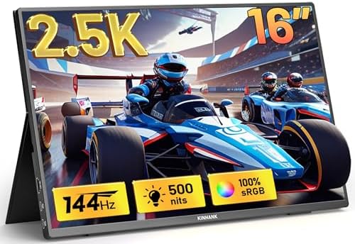 2.5K 144Hz Portable Gaming Monitor 16", 2560x1600, Plug & Play, 100% sRGB, 500nits, 16:10, Eye Care Second Computer Display with Speakers for Laptop, PC, Mac, P-S4/5, Sw-tch, X-BO, USB-C/HDMI, (K16G)