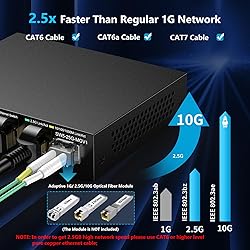 【 Smart Web Managed Switch 】Easy-to-use interface offers managed control for secure setup, access. You can enter management interface via web login, support device/port status query and various configurations: such as VLAN, QoS, security, multicast, MAC address table, etc. This switch does not come with VPN functionality. 【2.5G Super-Fast】This 2.5 gigabit switch features 5 x 2.5G RJ45 ports and 1 x 10G SFP+ port, providing higher-speed connectivity for your devices and allowing you to easily upgrade your network to support the latest 2.5G ethernet standard. NOTE: To get 2.5GB high network speed please use CAT6 or higher level pure copper ethernet cable. Please make sure other network products come with 2.5GB network cards to get whole network 2.5GB speed, otherwise the network speed will be determined by the lowest speed network device. 【Application】The muti-gigabit switch can work with a wide range of ethernet devices, including 4K Video, Laptops with 2.5G Ethernet Adapter, Wifi 6 Router, Wifi 6 AP,2.5G Gaming PC,2.5G NAS computers. To achieve better performance, it's better to upgrade all your devices to 2.5g to get a better experience. 【Sturdy and Quiet】Compact & sturdy metal housing with 6KV lightning protection design make this 2.5 gigabit network switch safe to use in various environments. The fan-less design quietly integrates with your office environment and featured good heat dissipation, safe to use in temperatures from -20 to 50℃. 【US Local Tech Support】Chicago-based seller, tech support hour 9 am-5 pm CST. Please contact the seller for tech support. This 5 Port Ethernet Switch 2.5G is worth your while!