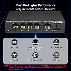 - 5 Port 2.5GB Web Managed Ethernet Switch Network Switch | 5 x 2.5 Gigabit | 1 x 10G SFP+ | Multigig Switch 10-100-1000Mbps | 45G Bandwidth | Fanless Metal Internet Switch