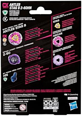 - ANTLER STAG B 2-60HN CX RIGHT-SPIN DEFENSE TYPE WITH STAMINA TYPE BLADE: Includes Takara Tomy-designed Beyblade X launcher and top with authentic die-cast metal parts
