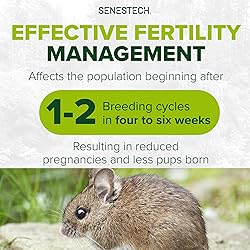- Stop the infestation before it starts — with mouse birth control that works. EVOLVE Mouse Birth Control is a scientifically proven solution that reduces fertility in mice to control populations humanely and effectively. In a 2023 study conducted in SenesTech’s lab, EVOLVE reduced fertility in rats by up to 61% after just one breeding cycle. Unlike traditional mouse control products, EVOLVE Mouse Birth Control is not a poison, causes no death or secondary kill, and is safe for use around people, pets, and non-target wildlife when used as directed. A pair of rats can lead to up to 15,000 descendants in a year under ideal conditions, with mice following similar reproductive potential. Industry research from Rentokil further supports how a rat population can grow from two to around 1,250 in just one year. EVOLVE Mouse Birth Control begins working after just one breeding cycle (4–6 weeks), with noticeable reduction in mouse activity in 2–3 months and long-term control over time. Maintain a consistent supply of bait for best results. For faster impact in high-infestation areas, EVOLVE Mouse Birth Control can be used alongside traditional traps. Made with food-grade ingredients, EVOLVE Mouse Birth Control soft bait sausages are highly palatable to mice and easy to deploy indoors or outdoors — in bait stations, sheds, gardens, or near food sources. As populations decline, replenish with less bait. EPA-designated as a FIFRA Section 25(b) minimum-risk pesticide. EVOLVE Mouse Birth Control offers a powerful, environmentally responsible alternative to traditional rodenticides. It's trusted by pest control professionals and now available for home use. Shipping Notice & Storage Tip: We do not ship to PR, IN, SC, TN, CO, CT, DC, FL, ID, MD, MS, MT, PA, RI, WA or WI due to local regulations. Note: EVOLVE Mouse Birth Control soft bait sausages may appear oily in warm tempemouseures — this is normal and does not affect effectiveness. The texture will resolidify in cooler conditions, and mice love it either way.