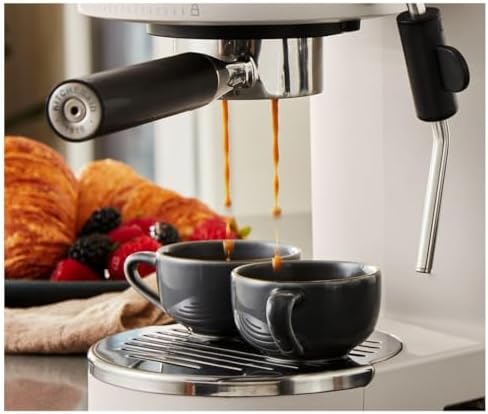 Semi-Automatic Espresso Machine Creating quality espresso drinks at home is easy and fun with the KitchenAid Semi-Automatic Espresso Machine. The same process used at the coffeehouse has been simplified for at-home use. Put your own personal twist on espressos, macchiatos, cappuccinos, martinis, affogatos… whatever you’re in the mood to make. Dual, smart temperature sensors maintain the perfect brewing temperature shot after shot. And the fast-heating thermocoil technology heats water up to the ideal brewing temperature in less than 40 seconds. Rich, creamy espresso is just a grind, tamp and brew away.