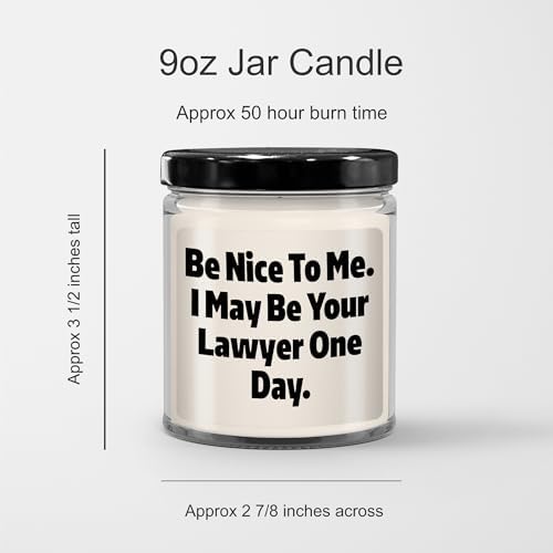 - Surprise your lawyer loved one with this unique and funny 'Be Nice To Me. I May Be Your Lawyer One Day.' 9oz Vanilla Soy Candle, a thoughtful gift for any occasion, whether it's Christmas or just because.