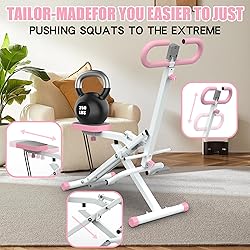 Perfect Full-Body Workout: Engage your shoulders, back, and chest with every movement. The squat machine aids in enhancing muscle strength and core stability. Effective Butt Lifter Machine:The perfect home fitness equipment, squat style, shifts weight back to your gluteus maximus, fully engaging your glutes. A glute training assistant coach, helping you to train and shape your back, shoulders, chest, biceps, triceps, abs, glutes, hips, and thighs simultaneously. Adjustable Seat And Resistance Bands: Enhance your stability with wide rotating foot pedals and an adjustable seat with non-slip grips. The resistance bands in the squat machine can be added or removed to adjust the resistance of your workout to suit your fitness level. Digital Display: Track important workout data during your exercise, making your workout more scientific. It displays time, count, and calories burned. It ensures your training progress is updated at all times. Maximum weight capacity for users - 250 lbs.