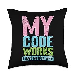100% Polyester Beautiful motif on the topic programming. Associated terms are computer, coding and software. Nice grafic for Computer Fans and Internet Nerds with the title: My Code Works, I Have No Idea Why. The language of computers consists of 1 and 0, not everyone can tell the PC what to do. It is not easy to program the so called software, for that you have to be almost a nerd. Games or software have programmed databases. 100% spun-polyester fabric Double-sided print Filled with 100% polyester and sewn closed Individually cut and sewn by hand Spot clean/dry clean only