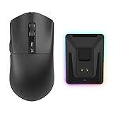 OLED DISPLAY BUTTON: Stay in control with a built-in OLED DPI display that shows DPI levels, connection mode, and battery status. Easily adjust DPI without guessing, ensuring precise performance for any gaming scenario 59G ULTRA-LIGHTWEIGHT BUILD: Engineered for comfort and speed, this 59g lightweight gaming mouse minimizes fatigue during long gaming sessions. Ideal for FPS gamers or palm-grip users who need precision and agility. TRI-MODE CONNECTIVITY: Connect seamlessly via 2.4GHz wireless, Bluetooth 5.0, or USB-C wired mode. Enjoy stable, low-latency performance with up to 30 hours of use on a single charge, perfect for both gaming and productivity. PIXART 3395 SENSOR & HUANO SWITCHES: Equipped with the eSports-grade PixArt PAW3395 sensor for 26,000 DPI accuracy and Huano Blue Shell Pink Dot switches rated for 80 million clicks, delivering consistent, crisp feedback every time. RGB CHARGING DOCK & PREMIUM BUILD: Includes a magnetic RGB charging dock with underglow lighting for easy storage and visual flair. Comes with 100% pure white PTFE mouse feet and anti-slip grip tape for superior glide and control.