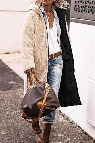 AirPlace Full Length Fleece Jackets for Women Hooded Long Coats Quilted Cashmere Sherpa Plush Fleece Lined Warm Winter Jacket
