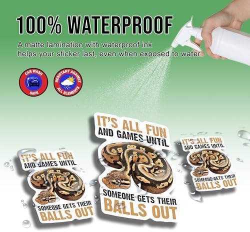 Ball Python Sticker Ball Python Lover Decal Cute Animal All Fun Until Someone Gets Their Balls Out Vinyl Stickers Weather-Resistant Stickers for Water Bottles Laptop Phone Wall Window Car 3"