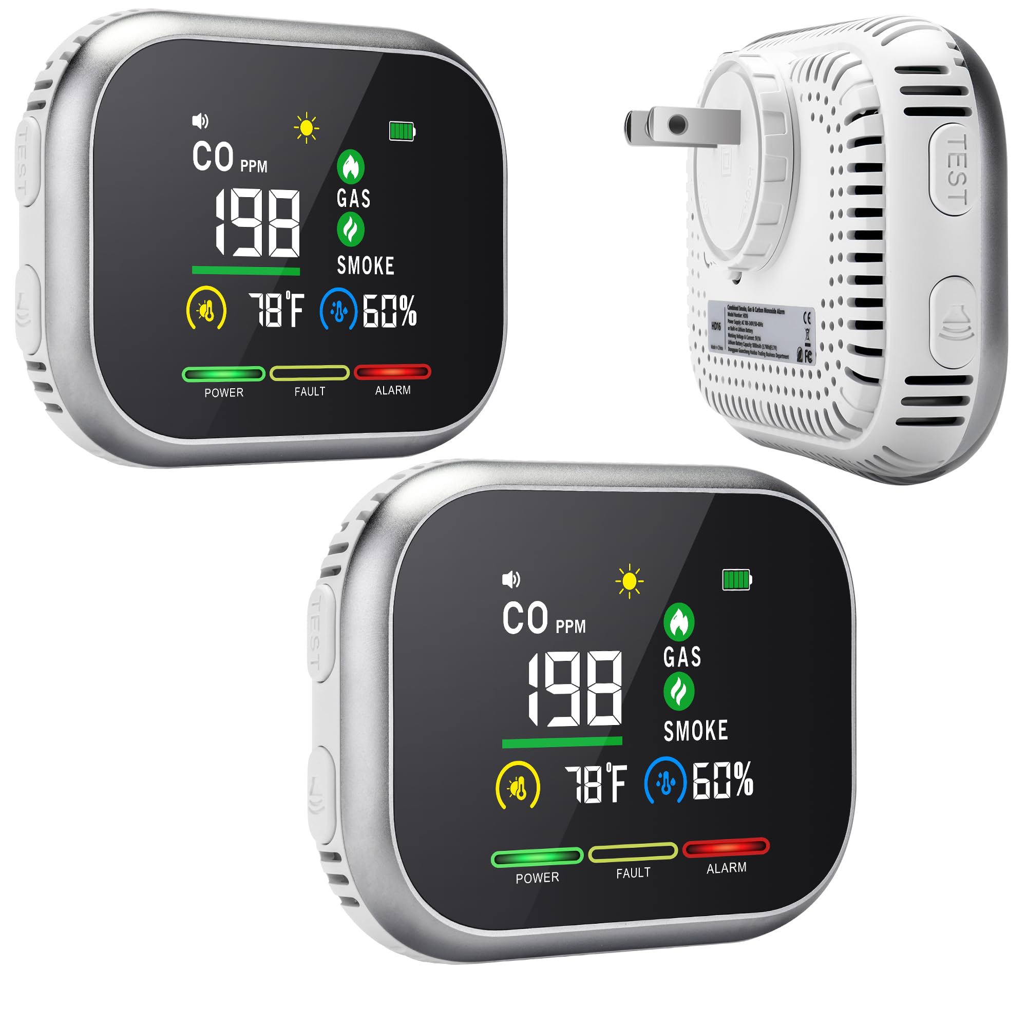 5-in-1 Gas & CO Detector with Digital Display | Plug-in + 9V Battery Backup Carbon Monoxide Detectors| Adjustable Brightness & Alarm Volume | Home, RV, Apartment (1-Pack)