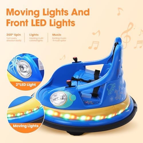 12V Electric Ride On Bumper Car for Toddler & Kids Ages 1.5-6 Years with Remote Control, 2PCS DIY Stickers, 360 Degree Spin, Lights, Sounds, Blue