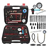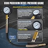 【Compression and Leak Test Kit for Diesel/Petrol Engines】Compression and leak test kit is a multifunctional comprehensive diagnostic tool with 46PCS ultra-high configuration, which includes a diesel pressure gauge to measure cylinder compression value, a dual-meter leak detector to display pressure and leakage rate, and various types of glow plug, injectors and spark plug adapters, which can easily help you test the compression and leakage of diesel and gasoline vehicles 【Wide Compatibility】46-piece engine compression tester kit is suitable for most car, truck, bus, agricultural and marine engines, designed for modern gasoline and diesel engines, including HDi, TDCi, Pumpe Duse (PD) and old diesel and gasoline engines. Compatible with Alfa/BMW/Ford/Chrysler, compatible with Mercedes-Benz/Nissan/Toyota/Daewoo, etc., with a wide range of applications, ensuring a thorough diagnosis of various vehicles 【High-Precision Dual-Scale Diesel Pressure Gauge】Diesel compression tester kit is equipped with a compression gauge with a rubber protective pad that reads in psi and bar, which can accurately measure the cylinder compression value up to 50 bar (700 psi). In addition, the compression gauge is equipped with a pressure relief valve to reduce the risk of fuel injection by releasing pressure before disconnecting, ensuring safety during operation 【Multi-Function Dual Gauge Leak Down Tester Kit】In addition to the compression gauge, cylinder leak down tester kit also comes with a dual gauge that displays pressure and leak rate, which is used to identify engine cylinder leaks and detect common engine failure problems such as cylinder head cracks, worn piston rings, blown head gaskets, worn valves, etc. By measuring and observing the amount of leakage displayed on the cylinder leakage gauge, it helps to determine the source of the leak 【Durable Material】Compression tester automotive is made of high-quality aluminum alloy as well as brass, which is high in strength and has excellent corrosion resistance, while the rubber hose can withstand high pressure and high temperature, ensuring your safe use. In addition, the gauges are also protected with rubber bumpers for added durability 【Efficient Design】Petrol & Diesel compression tester kit comes with straight and angled quick connectors for quick and easy connection, minimizing downtime and increasing efficiency and productivity. In addition, compression tester automotive comes with an extra-long 9.8-inch extension tube and 18-inch extension hose to help you achieve long-distance connection and testing 【Heavy-Duty Blow-Molded Tool Box, Easy to Store/Carry】Engine cylinder compression tester kit comes with a thickened heavy-duty blow-molded tool box, and the built-in foam insert can hold all the tools in place for safe storage. After each use, the tools can be neatly and orderly arranged in the box to prevent loss and confusion, and easy to carry 【3-Year Warranty】We provide a 3-year warranty on this engine cylinder compression tester kit. We want to make sure that you have the best experience possible. If you have any questions before purchasing or during the use of the petrol & diesel compression tester kit, please feel free to contact us, and our professional customer support team will provide assistance within 24 hours and promptly help you solve any problems or concerns you may encounter