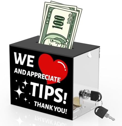 - 【WITH LOCK】The lockable design of the acrylic tip jar helps safeguard against theft and provides secure storage for tips. Furthermore, a locked tip box limits access to authorized personnel only, ensuring that only designated individuals can retrieve the funds inside. When customers see a lock, they are likely to feel that their contributions are better safeguarded, which in turn enhances their trust.