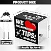 - 【SIZE&DESIGN】The tip jars features a practical size of 6 × 4 × 5 inches, providing ample capacity for tips. The tip jars' insert slot measures 3.9 × 0.4 inches, allowing for the easy insertion of various items. The front of the tip jars is adorned with elegant patterns and informative text designed to encourage customers to contribute tips. Meanwhile, the other three sides are clear, enabling a clear view of the contents inside.