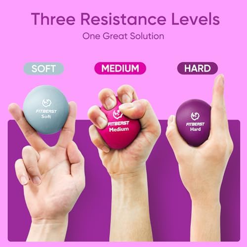 FitBeast Grip Strength Trainer – 6 Pieces Hand Therapy Kit with Finger Extension Exerciser & Stress Balls for Adults, Rehab & Strength Training – for Men, Women, and Seniors