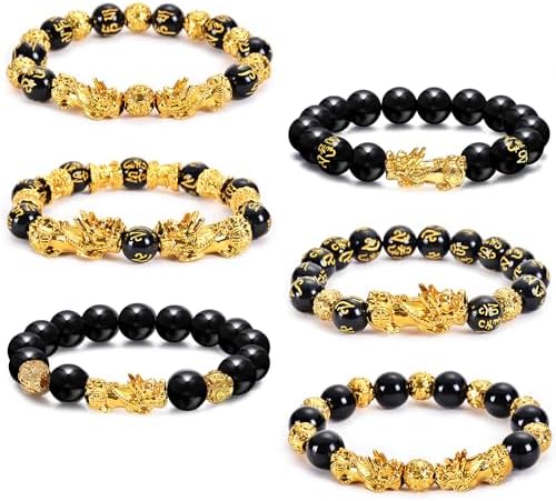 RIOSO Feng Shui Bracelets for Men Women Good Luck Black Obsidian Pixiu Beads Lucky Bracelet Set Dragon Attract Wealth Money Fortune Pi Yao Jewelry