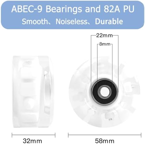 - Ease of Installation: Roller skates accessories Includes 8 packs of 32mm x 58mm skate wheels for Double Row roller skating and skateboarding, 1 mounting wrench for installation