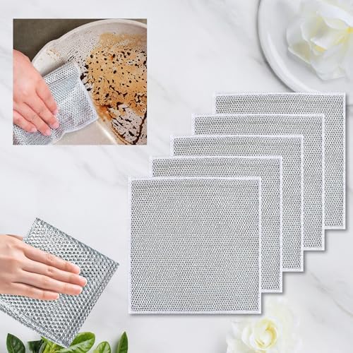 Upgrade Multipurpose Dishwashing Rags - 10pc Double Layer Wire Cleaning Cloths for Wet & Dry Use, Kitchen, Sinks, Countertops, Stove & More