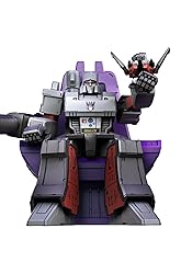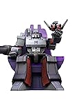 Classic G1 Design Look- This is Megatron just like you saw in the cartoon - with a real metal finish, three face options, and all the details that made him famous. Full Arsenal of Weapons- Complete with all signature weapons: fusion cannon, energy mace, sword, and more - straight from the classic animation. Light-Up Features- Magnetic-activated LED system brings Megatron to life with glowing eyes and chest. Built to Move- With 45 moving joints and special armor design, you can pose Megatron any way you want. His fingers move, his legs bend, and his armor opens to show cool details inside. Command Center Display- 17.5cm throne doubles as storage for all accessories - perfect for display or play.