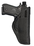 Outside the Waistband Carry Belt LOOP Holster makes a steady platform for drawing and re-holstering gun; belt clip allows wear on trouser belt or holster belt up to 2.5" wide. Constructed from laminate Cordura nylon, waterproof closed-cell foam padding and smooth nylon lining. Adjustable thumb-break retention strap protected by Strap Trap that covers Velcro adjustment. The photo shows a RIGHT-HAND DRAW. Barsony New OWB Belt LOOP Holster is compatible with gun make/model sizes listed in the drop down menu.