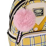 Dyed Pink Faux Fur Features: Woven mini backpack with faux leather (polyurethane) trim, sturdy top handle, adjustable shoulder straps, applique, embroidered, faux fur, faux leather charm, knit fabric, metal charm, real button, real chain, and printed details, Detachable coin bag, Coordinating interior lining. Dimensions: 9"W x 10.5"H x 4.5"D, 22.8cm W x 26.6cm H x 11.4cm D. This is an officially licensed Clueless product.