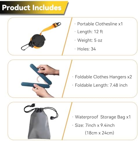 - 【 Sturdy And Built To Last】-The Clothesline Has 34 Hanging Holes, Metal Hooks, And Fixed Protectors.You Can Easily Hang Suits, Baseball Uniforms, Jackets, Dress Shirts, Pants, And More Without Worrying About Them Falling Off The Hanger. Travel Clothes Lines Is Made Of Nylon, Get Tight And Less Stretch,Can Bear 25 Pounds
